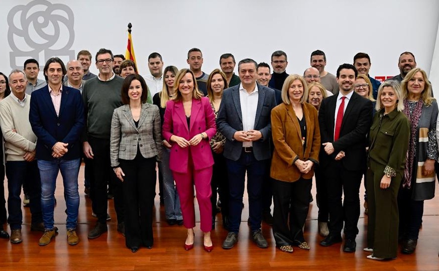 Pilar Alegría, junto a alcaldes socialistas en una imagen de esta semana.